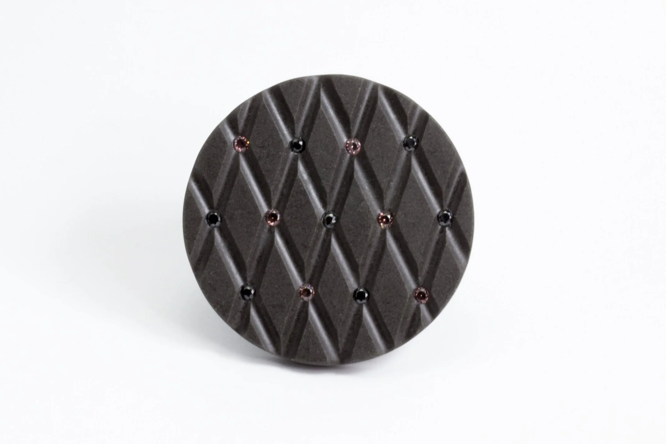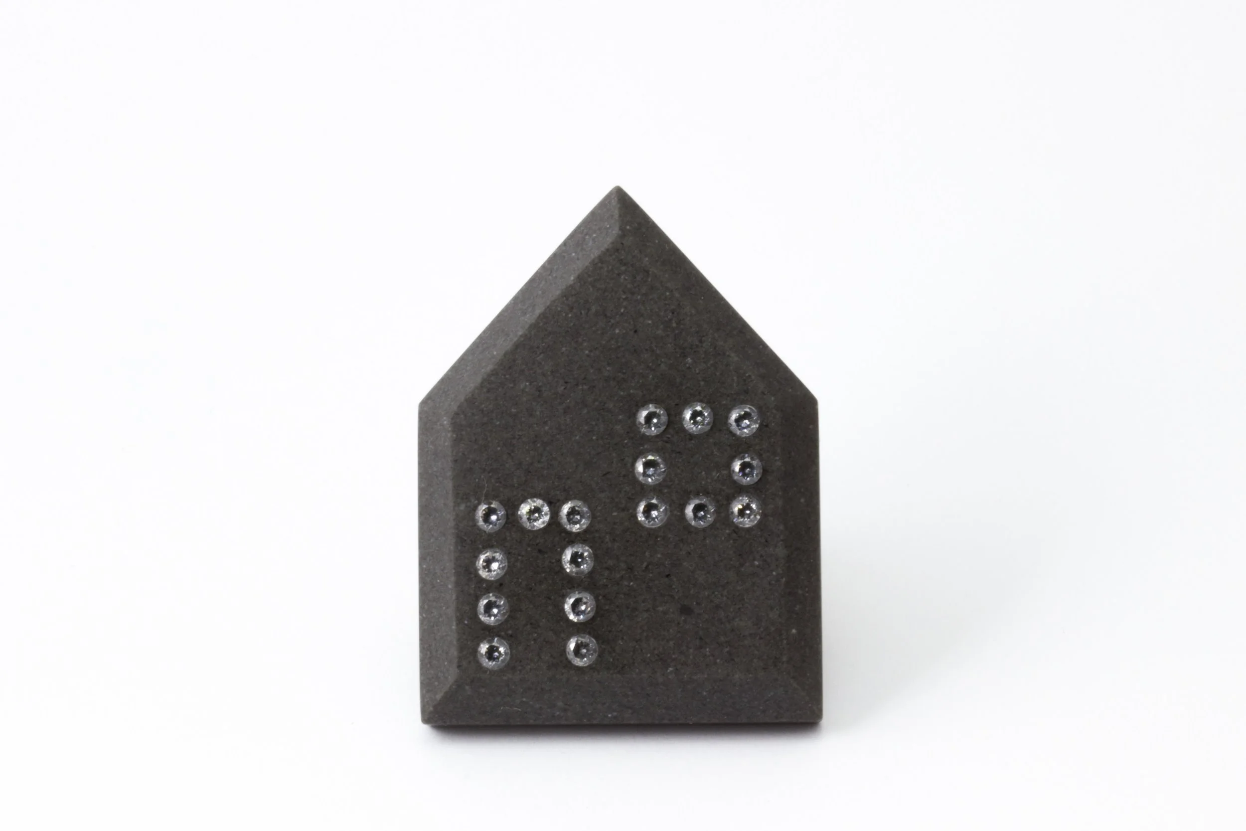 Untitled, 2023, brooch – greywacke (NZ), cubic zirconia, sterling silver, stainless steel